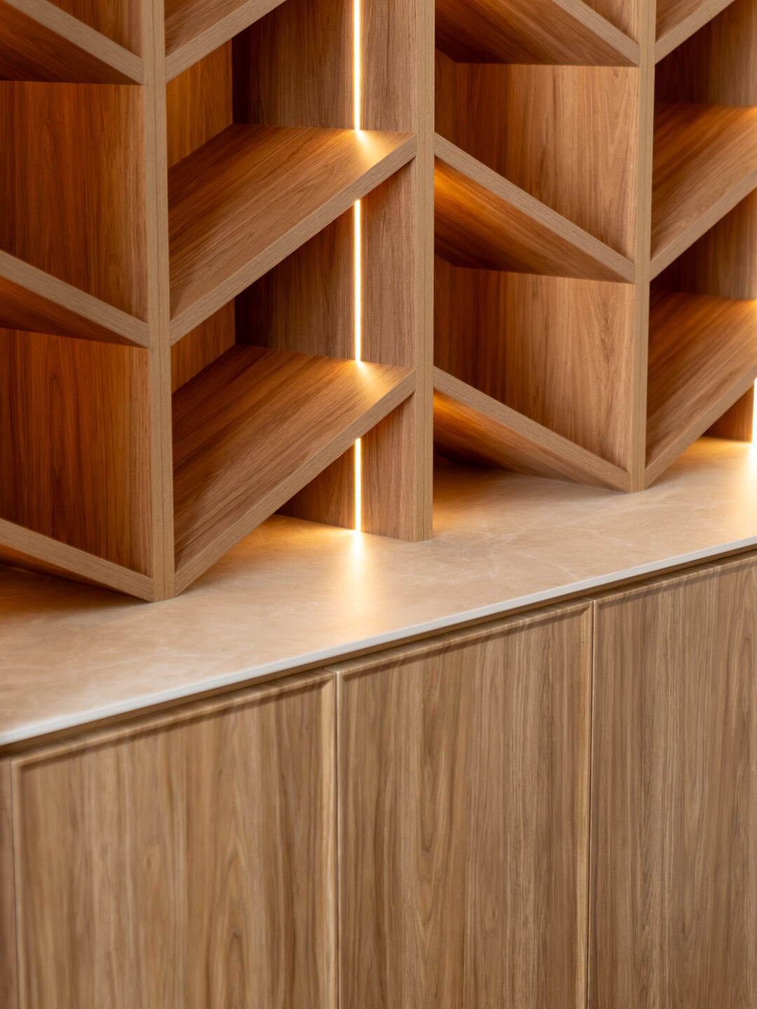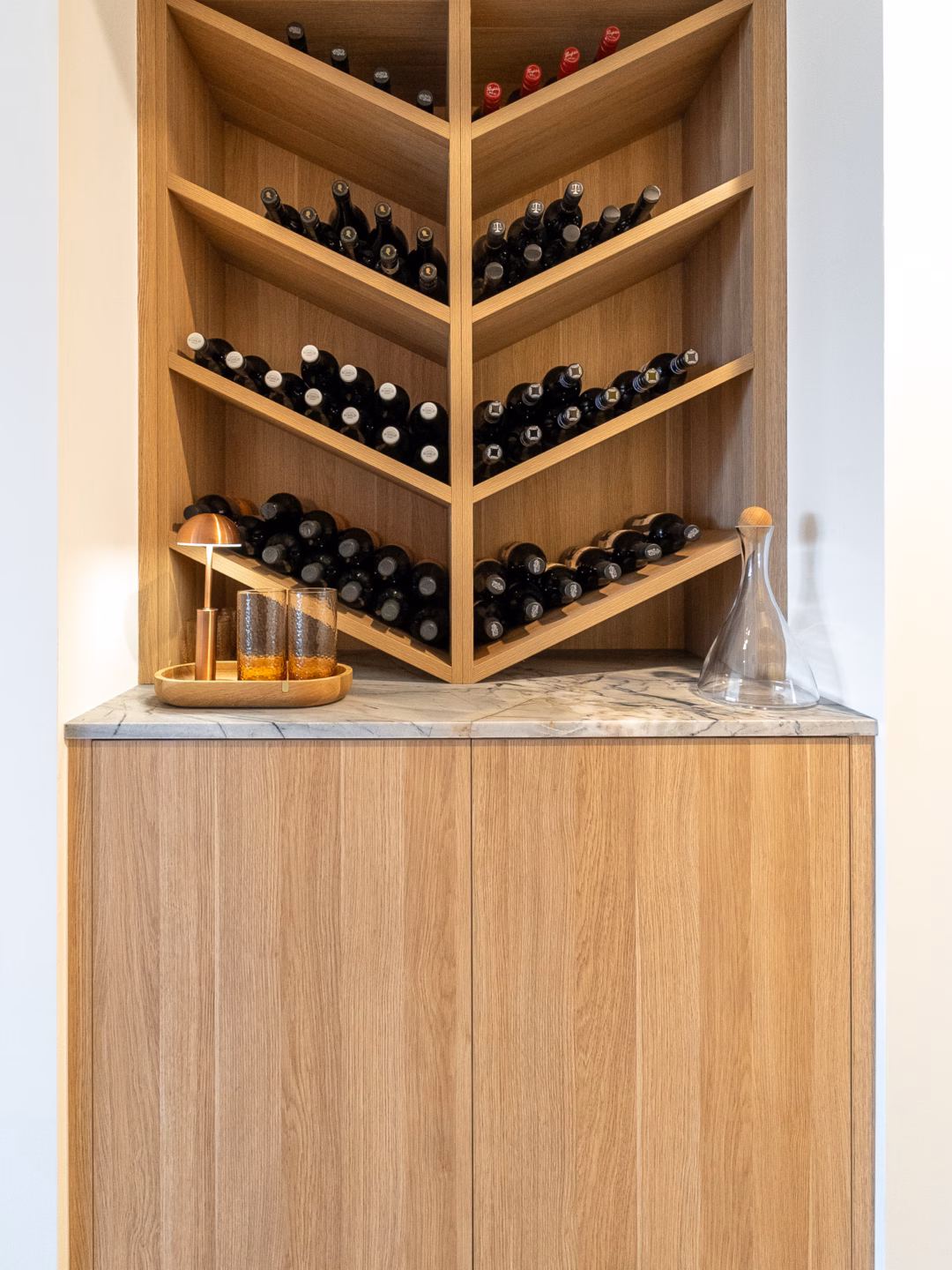 - Appliance Integration: Seamlessly incorporate wine cooling units or bar fridges into your cabinetry. We design the surrounding structure to ensure proper ventilation while maintaining your desired aesthetic.