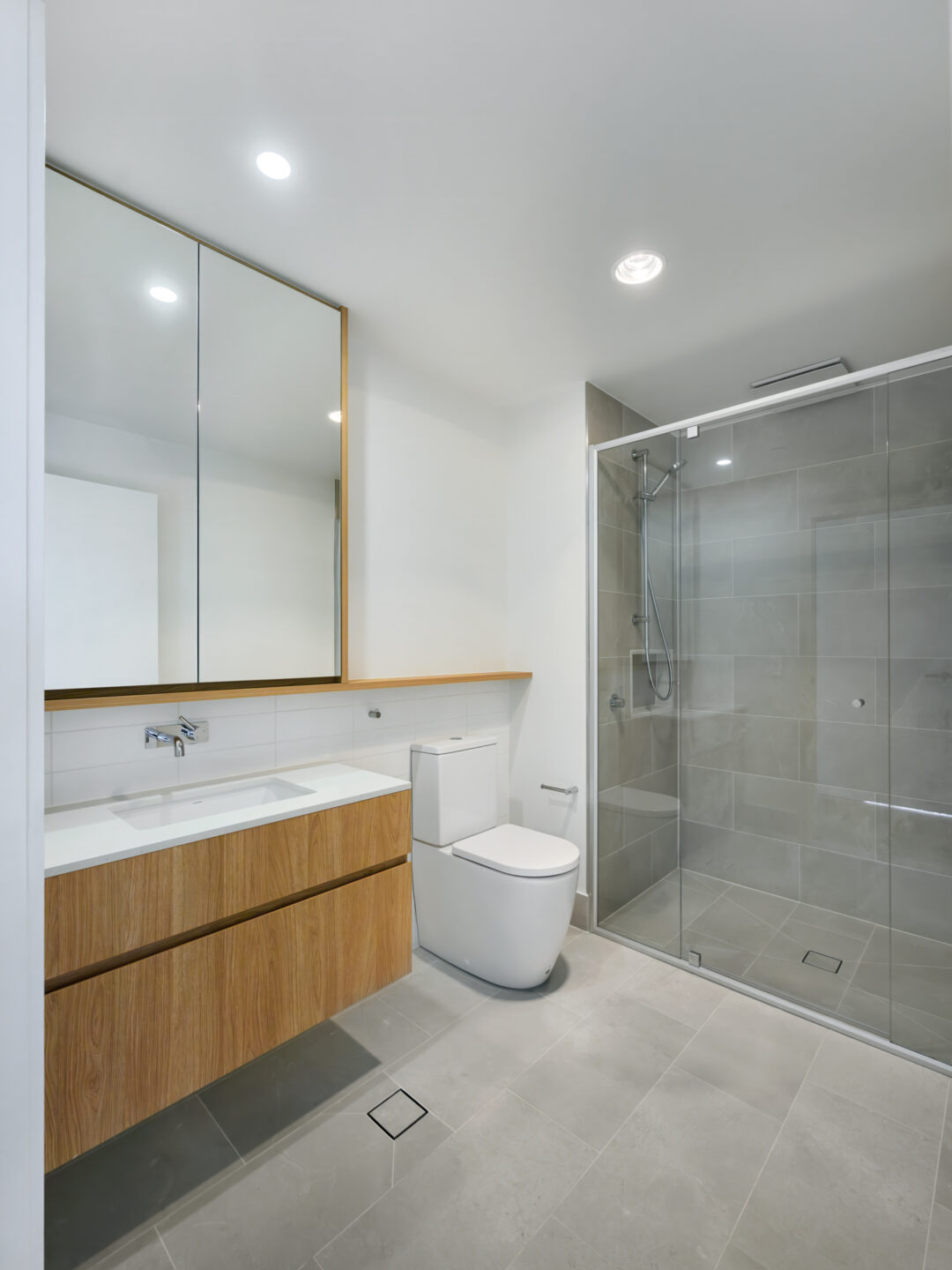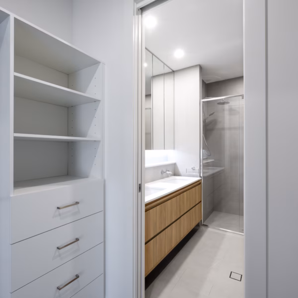 This project, valued at $19.5M by Sarah Constructions at the Cedarwoods Glenside development, involved 62 luxury townhouses. Packers manufactured and installed all aluminium windows and doors, utilising a commercial-grade window system for the residential application, along with all shower screens, sliding wardrobes, and walk-in wardrobes throughout.