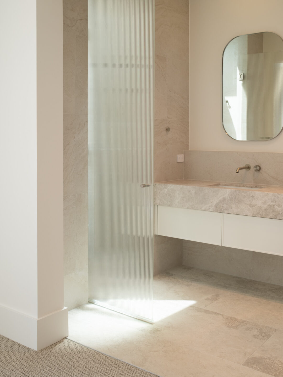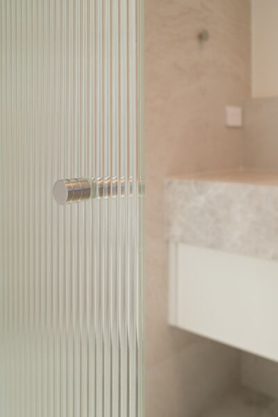 - Reeded Glass: A textured, fluted finish that adds a vertical architectural detail while providing stylish privacy.