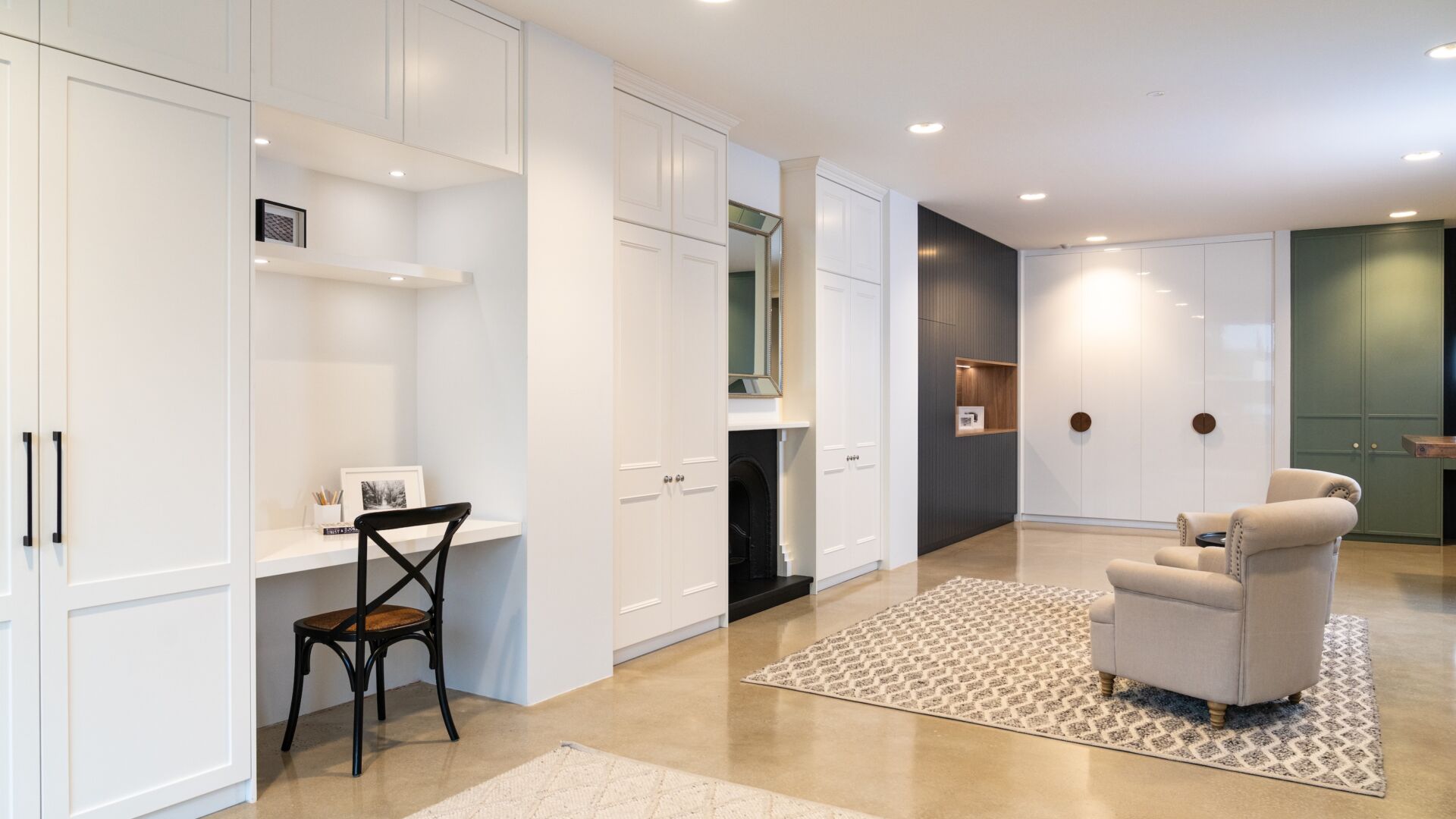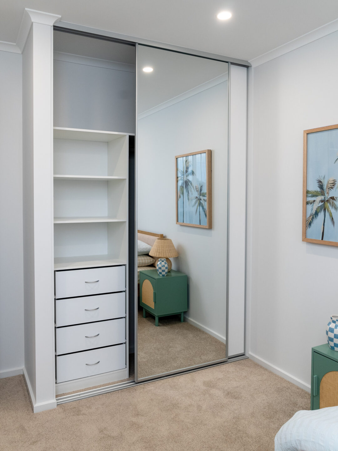 Explore our full range of sliding and hinged wardrobes at our showroom. Experience our diverse collection of accessories and drawer styles firsthand, so you can see exactly how your custom storage solution will look and function.